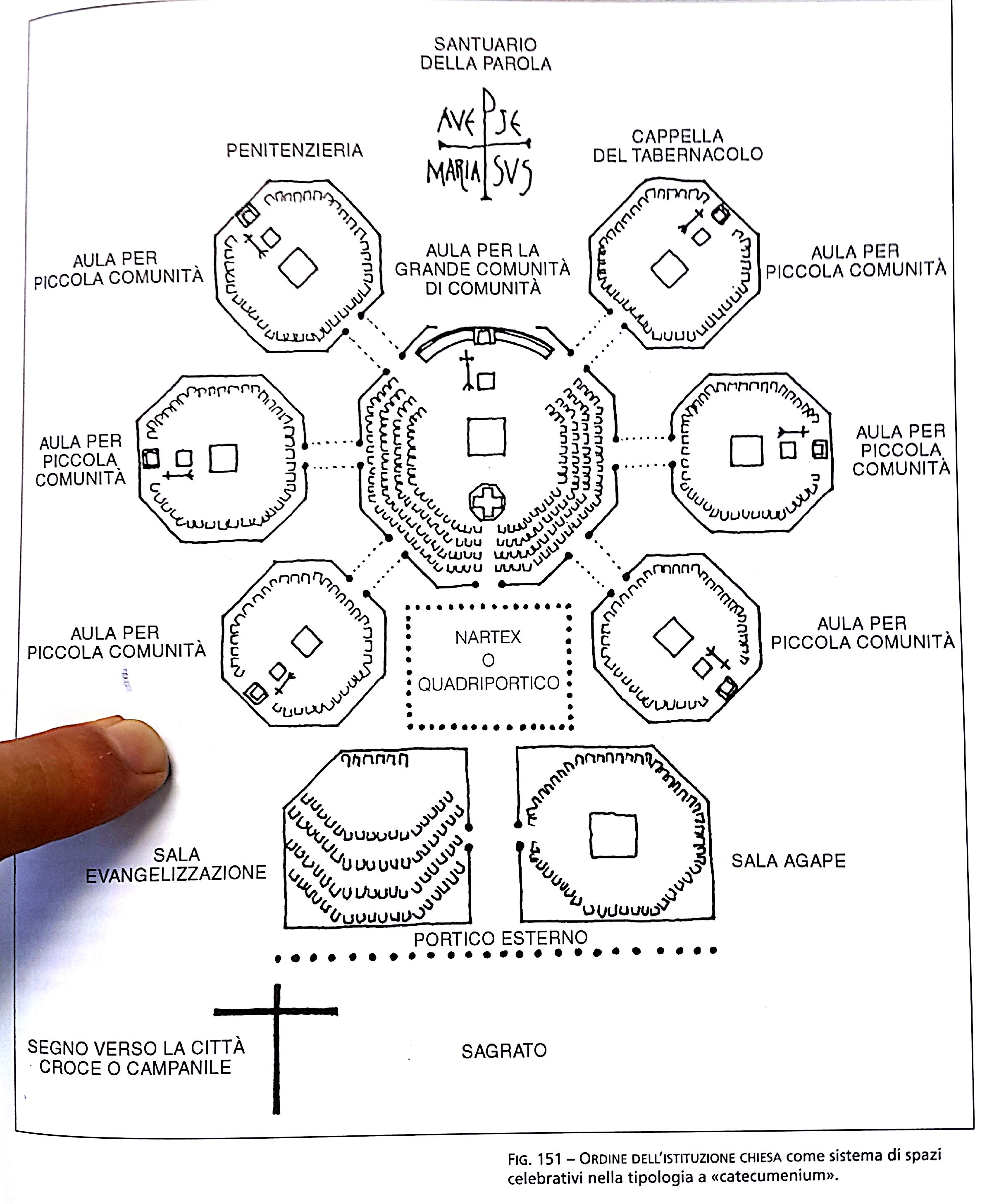Examples of “catecumeniums” from the book. One chapel built for each community within the parish so that they can celebrate Mass separately, but simultaneously. Sure to enhance parish unity!