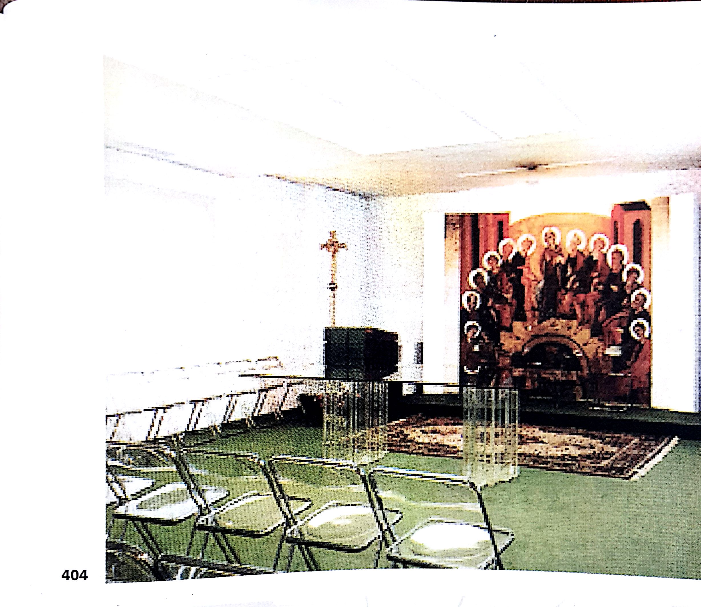 Transparent chairs, and even a transparent altar Eucharistic table! This sure wasn’t designed by unwashed pagans. Pure heaven!